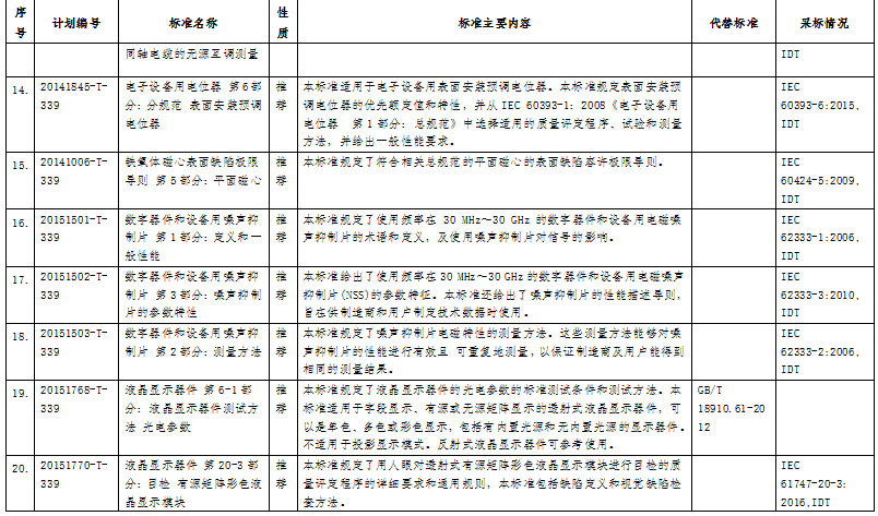 根據標準制修訂計劃,相關標準化技術組織已完成《半導體集成電路沖壓型引線框架》等14項行業標準和《光伏器件 第2部分:標準光伏器件的要求》等26項國家標準的制修訂工作。在以上標準批準發布之前,為進一步聽取社會各界意見,現予以公示,截止日期2020年10月23日。