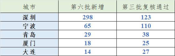 圖2.五個計劃單列市第六批新增與第三批通過復審“小巨人”數量