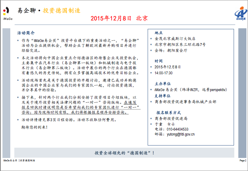 由商務(wù)部投資促進(jìn)事務(wù)局支持的《投資德國制造項(xiàng)目介紹會(huì)》將于12月8日在北京召開,詳情如下。