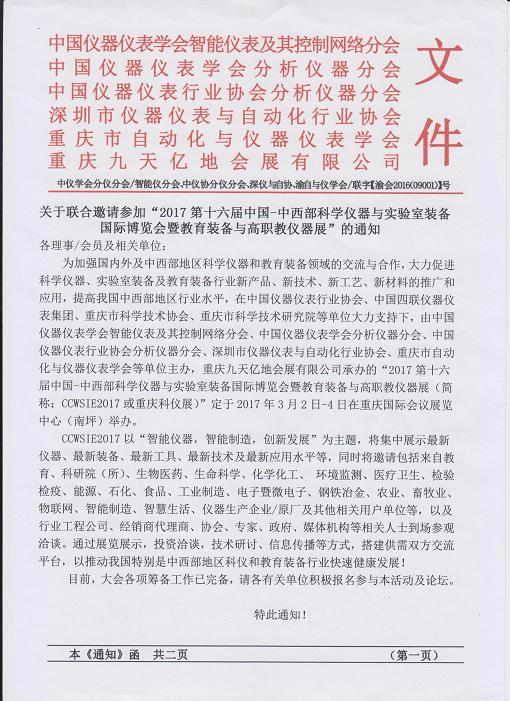 器與實(shí)驗(yàn)室裝備國(guó)際展覽會(huì)暨教育裝備與高職教儀器展”的邀請(qǐng)函