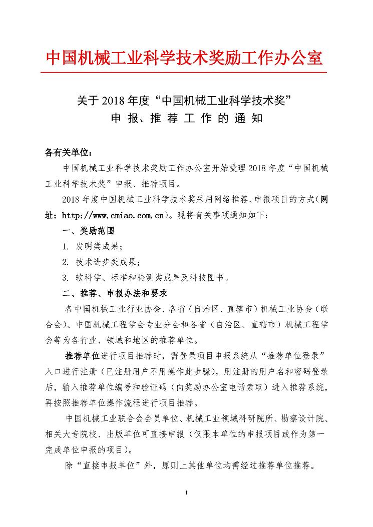 附件:關于2018年度“中國機械工業(yè)科學技術獎”申報、推薦工作的通知