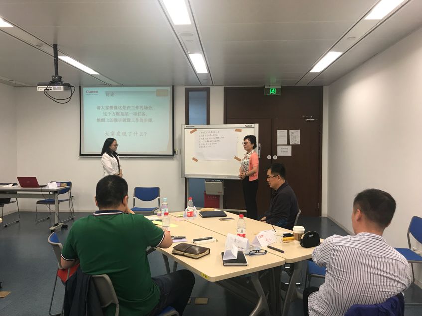 第二次課程在輕松熱烈的氛圍中開始,佳能高級講師首先簡單回顧了第一次課程的要點,之后采取輕松愉快的“星座”分組模式,帶領學員逐個分享與實際工作相結(jié)合的“全體像分析”及“APS流程細化”作業(yè);在學員分享過程中,積極帶動各小組成員共同分析和探討,分析所授“手法”掌握的程度及問題,總結(jié)其中優(yōu)秀的做法,探討問題的其他解決方案;通過分享及參與的方法再次引導大家理解和鞏固目標管理的三要素、3M原則及全體像的應用方法等手法。