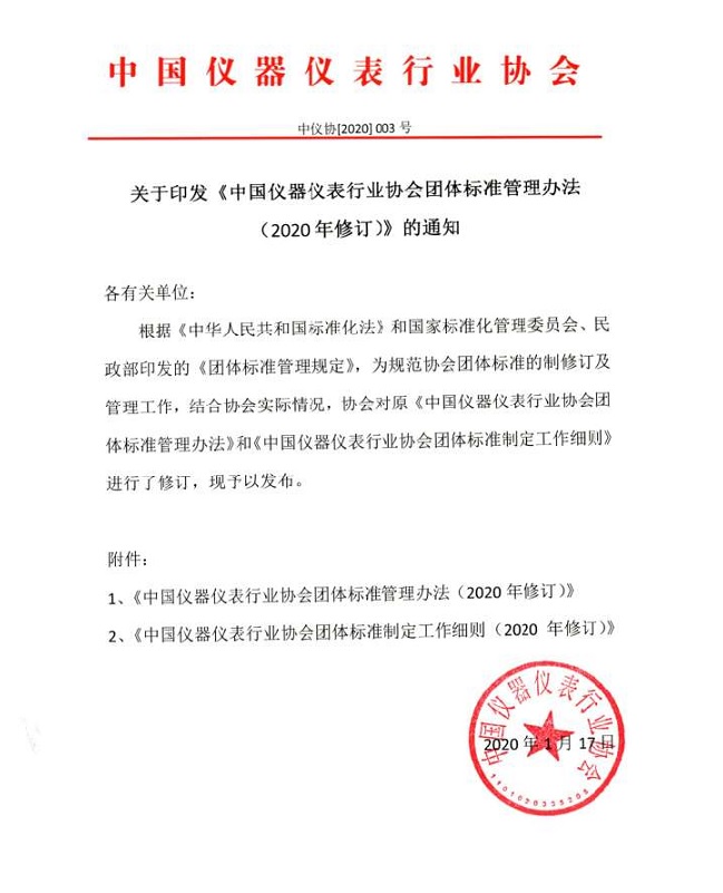 關(guān)于印發(fā)《中國儀器儀表行業(yè)協(xié)會團(tuán)體標(biāo)準(zhǔn)管理辦法(2020年修訂)》的通知