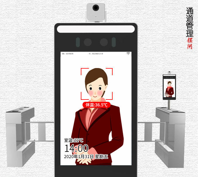 熱成像人體測溫門(以下簡稱:測溫門)是一種精確、便利的測溫設備。當人站在測溫門內,額頭對準測溫點1-2秒,體溫正常,則測溫門顯示正常體溫值。如果體溫超過37.3℃時測溫門就會自動聲光報警。
