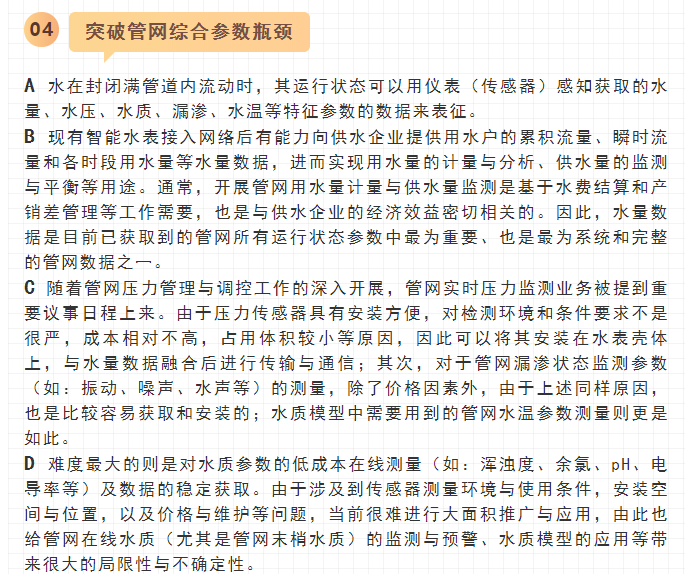 最近,寧水集團已正式啟動新一代智能水表(智能水表3.0)產品及供水新業務系統的商用化研發工作,在原先公司多個博士后課題研究基礎上進行商品化與工程化應用研究??梢灶A期,在不遠將來公司將為供水管網系統提供高性價比的水務綜合大數據,為管網現代化管理提供信息來源與決策依據(這方面詳細內容可參見附錄:“水表產品演進之路——從智能水表1.0/2.0產品向智能水表3.0產品邁進”一文)。至2020年初,公司在與浙江大學控制科學與工程學院合作基礎上,又先后與同濟大學環境科學與工程學院、寧波大學信息科學與工程學院等高校共同簽訂戰略合作協議,并聯合成立了“水務新技術研發實驗室”和“水務信息感知研發實驗室”,并將與寧波工業互聯網研究院等科研機構就水務新型傳感技術、供水關鍵核心業務等的解決方案展開合作研究。