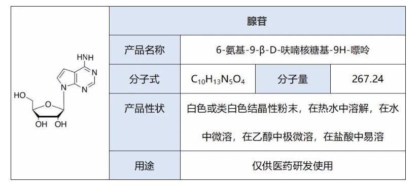腺苷作為天然核苷酸,是機(jī)體代謝的中間產(chǎn)物,也是體內(nèi)重要活性成分之一。腺苷做成的注射液1989年美國首次上市。腺苷(Adenosine, AD)即腺嘌呤核苷,是機(jī)體RNA的代謝產(chǎn)物,屬于生物小分子化合物,它是一種內(nèi)源性核苷,能參與血管神經(jīng)舒張活動(dòng),具有抗心律失常的功效。在中樞神經(jīng)系統(tǒng)中,它對(duì)神經(jīng)傳遞的調(diào)節(jié)及對(duì)抵抗缺血性與疾病性神經(jīng)傷害等方面具有重要作用。