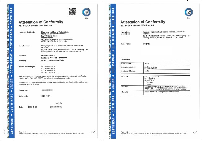近日,中國(guó)科學(xué)院沈陽(yáng)自動(dòng)化研究所獲得了國(guó)際認(rèn)證機(jī)構(gòu)TüV (南德意志大中華集團(tuán))頒發(fā)的總線型智能壓力變送器SIL2/3功能安全認(rèn)證證書(shū),這是我國(guó)首張總線型壓力變送器安全認(rèn)證證書(shū)。此前,沈陽(yáng)自動(dòng)化所獲得了該機(jī)構(gòu)頒發(fā)的智能溫度變送器SIL2/3功能安全認(rèn)證證書(shū)。