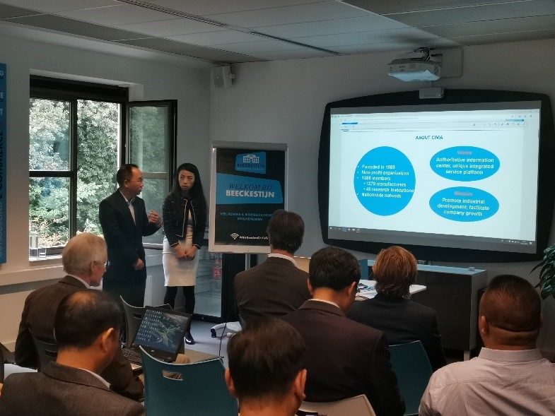 中國儀器儀表行業協會專職副理事長兼秘書長李躍光向FHI負責人和部分荷蘭企業介紹了中國儀器儀表協會基本情況,考察團代表分別與業務相關的荷蘭企業進行小范圍溝通,快速了解雙方需求和產品,共同探討合作空間。