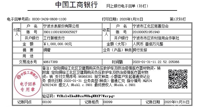 公司通過江北區(qū)慈善總會向江北區(qū)衛(wèi)生健康局定向捐款100萬元(用于購置負(fù)壓救護(hù)車),并于第一時(shí)間采購價(jià)值近60萬元的KN95防護(hù)口罩馳援武漢等地。