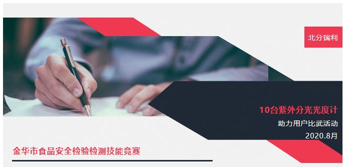 8月18日-19日金華市市場(chǎng)監(jiān)督管理局舉辦、金華市食品藥品檢驗(yàn)檢測(cè)研究院承辦的2020年度金華市市食品安全檢驗(yàn)檢測(cè)技能競(jìng)賽比武活動(dòng)如期開(kāi)展,北分瑞利10臺(tái)紫外分光光度計(jì)為此次比武活動(dòng)的指定實(shí)驗(yàn)儀器。