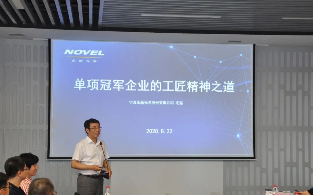 接著在座談會上,毛磊開展了“單項冠軍企業(yè)的工匠精神之道”的主題分享,以永新光學(xué)創(chuàng)新歷程的思考與創(chuàng)新實踐為切入點,闡述了單項冠軍企業(yè)的工匠精神之道——專注、堅持、積累和沉淀,強調(diào)了企業(yè)的發(fā)展必須有核心競爭力。在交流環(huán)節(jié),徐平炬會長就如何平衡企業(yè)的科技含量與市場規(guī)模與毛磊進行了交流,接著大家紛紛提問,從如何進一步提升永新光學(xué)的國際地位、疫情對不同行業(yè)的危與機等多個角度,展開了深入探討。