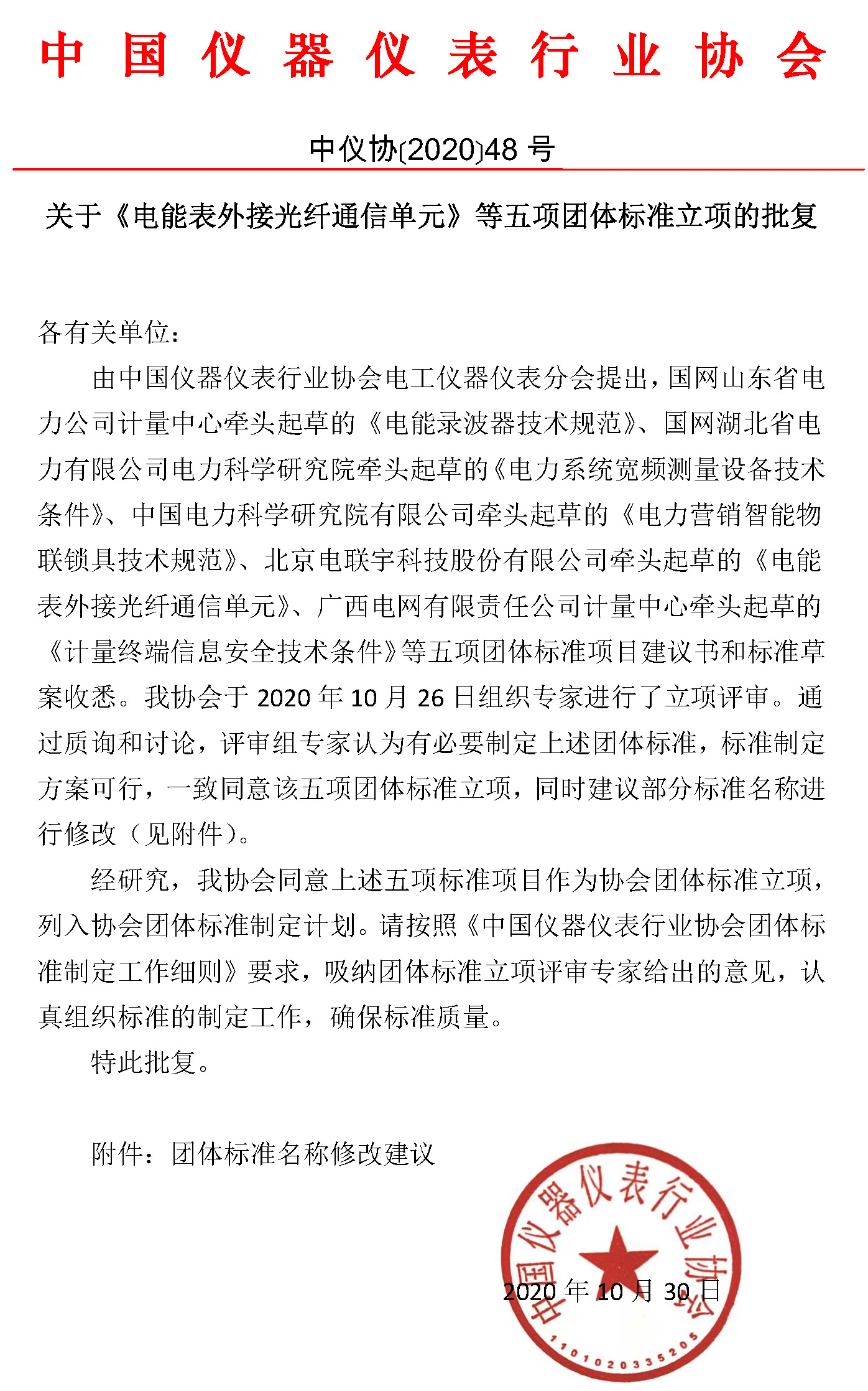附件:1、關(guān)于《電能表外接光纖通信單元》等五項團體標準立項的批復.pdf