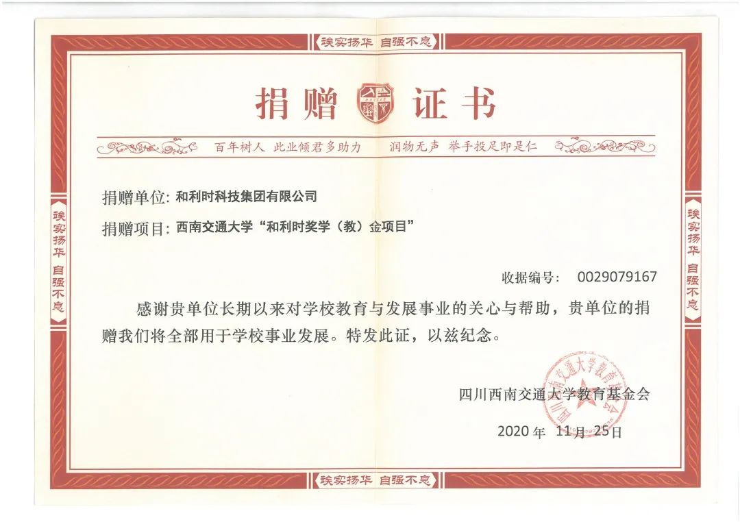 為了深入開展校企合作,共建校企人才培養(yǎng)平臺,和利時(shí)集團(tuán)策劃了青年人才引進(jìn)項(xiàng)目設(shè)置高校獎(jiǎng)學(xué)金計(jì)劃。西南交通大學(xué)成為軌道交通業(yè)務(wù)校企合作獎(jiǎng)學(xué)金計(jì)劃的重點(diǎn)合作院校之一。2020年11月27日和利時(shí)與西南交通大學(xué)的獎(jiǎng)學(xué)(教)金捐贈儀式順利舉行。