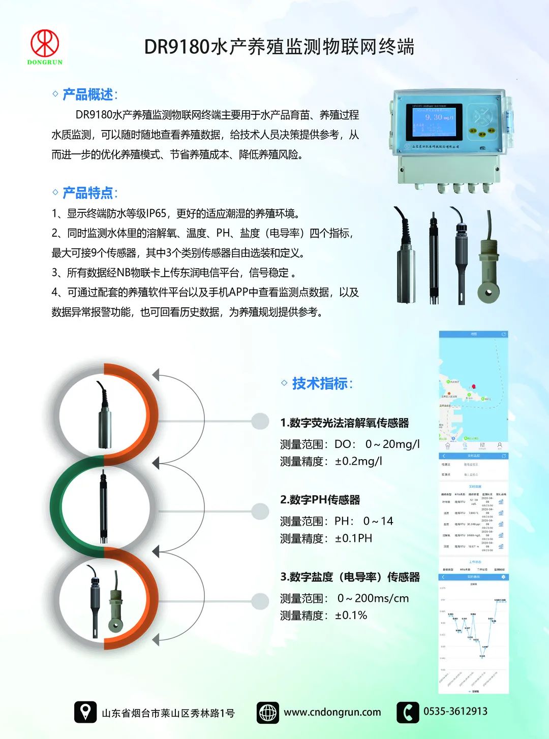 山東東潤儀表科技股份有限公司自主研發的“DR9180水質在線監測設備”新產品,在數字漁業水產養殖行業中得到了廣泛應用,該產品獲得了“優質產品獎”。