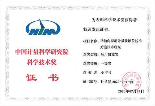 日前,中國計量科學研究院公布了2020年度科學技術獎獲獎項目的通知,由東菱公司總工程師仝寧可參與的《三軸向振動計量及原位校準關鍵技術研究》項目榮獲中國計量科學研究院科學技術獎一等獎。
