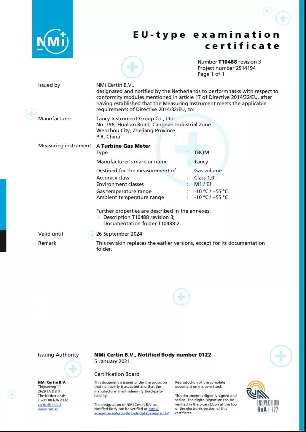 近日,金卡智能旗下天信儀表TBQM型氣體渦輪流量計(jì)同時(shí)取得歐盟MID和國(guó)際OIML的低溫認(rèn)證。該產(chǎn)品歷時(shí)3年,攻克了管道氣體溫度在-10℃下滿足1.0級(jí)計(jì)量精度要求的技術(shù)難題,有效提升了產(chǎn)品在不同工況下的計(jì)量性能和國(guó)際競(jìng)爭(zhēng)力。天信儀表成為行業(yè)內(nèi)全國(guó)首家榮獲歐洲荷蘭NMi和OIML低溫認(rèn)證的企業(yè),向國(guó)際低溫氣體的貿(mào)易交接計(jì)量邁出重要一步。