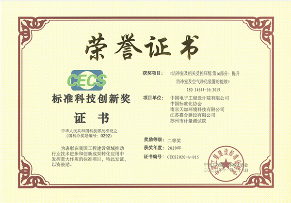 近日,蘇州市計量測試院作為主要起草單位之一發(fā)布的1項國際標準ISO 14644-16:2019《潔凈室及相關(guān)受控環(huán)境 第16部分:提升潔凈室及空氣凈化裝置的能效》,榮獲2020年標準科技創(chuàng)新獎二等獎。