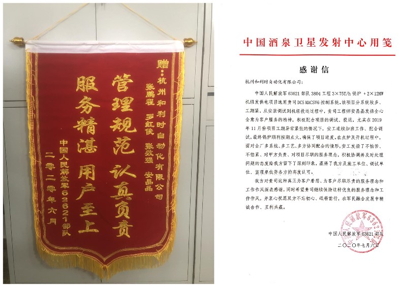 2020年,酒泉衛星發射中心智慧電廠項目順利開車,客戶對和利時專業精神和態度給予極大地認可和稱贊,并分別向項目人員張樹強、康管星、張鵬程、趙偉、羅紅俊、安晶晶發來表揚信。