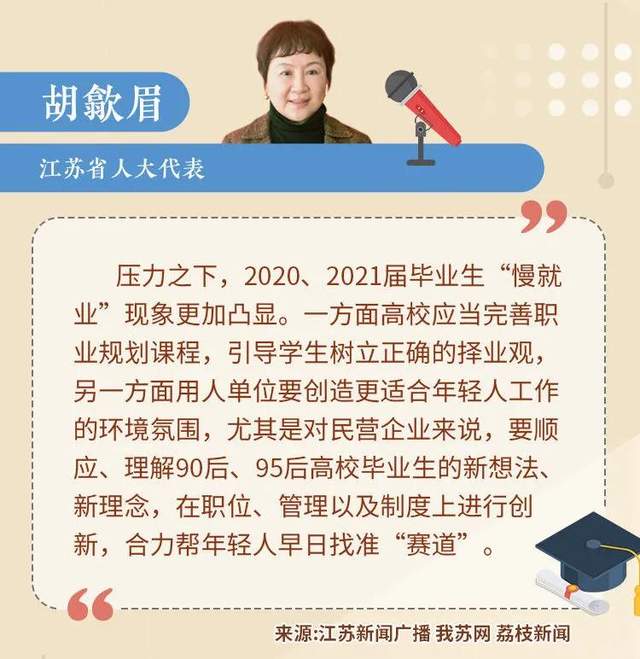 胡歙眉發(fā)現(xiàn),壓力之下,2020、2021屆畢業(yè)生“慢就業(yè)”現(xiàn)象更加凸顯,無論快與慢,年輕人盡快找準屬于自己的“賽道”才是關鍵。如何讓畢業(yè)生能夠結(jié)合自身優(yōu)劣勢制定個人規(guī)劃,更好地為國家重點需要發(fā)展領域做出貢獻,都是學校、用人單位都需要思考的問題。