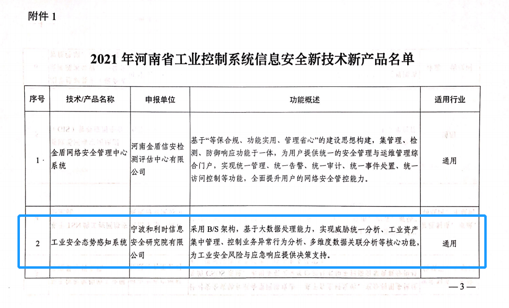 和利時入選河南省工業控制系統信息安全新技術新產品和