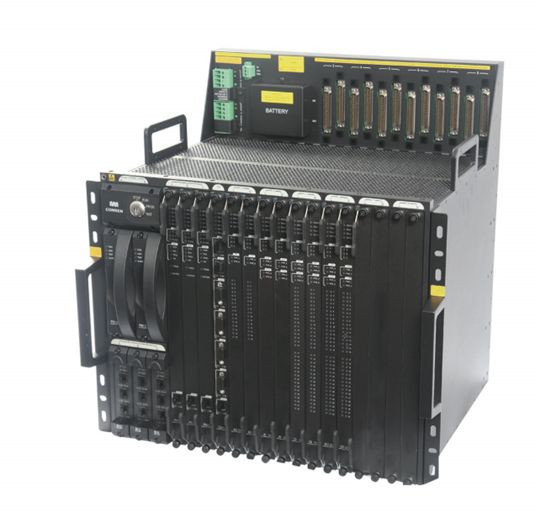 總線接口模塊對外包含3個光纖接口,供應商或系統集成商可以根據實際項目的需要選擇采用星型拓撲結構擴展遠程機架還是采用總線拓撲。由于項目的差異性,遠程機架與主機架的相對分布各不相同,靈活的拓撲可以幫助用戶盡量節省布線費用。