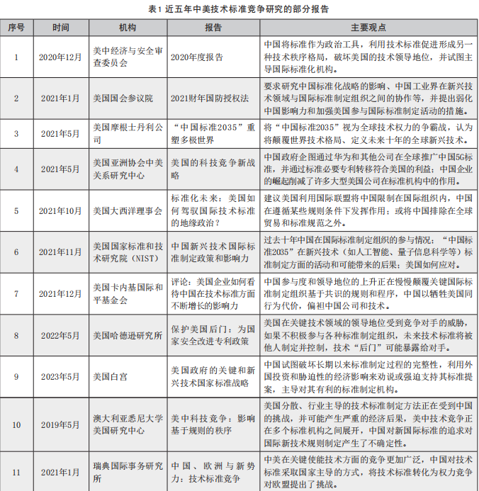 近年來,我國標準化水平和能力不斷提升,尤其《中華人民共和國標準化法》的修訂、《國家標準化發展綱要》及配套政策的實施,使得我國在國際標準制定方面的參與度和影響力與日俱增,引起了美國政策制定者和研究人員的高度關注和擔憂。202354日,白宮發布《美國政府的關鍵和新興技術國家標準戰略》稱,中國利用外國投資和經濟影響試圖破壞標準制定過程的完整性和公正性,為鞏固市場主導地位,中國往往通過代理公司來推動標準的規范性,而非技術優勢。