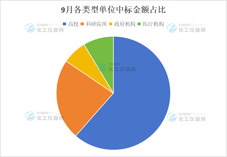 據(jù)化工儀器網(wǎng)不完全統(tǒng)計(jì),9月高校采購(gòu)電鏡10套,采購(gòu)金額為4305.26萬(wàn)元,約占9月電鏡采購(gòu)總金額的55.56%。從采購(gòu)數(shù)量上看,科研院所和政府機(jī)構(gòu)的采購(gòu)數(shù)量均為3套,約占9月電鏡采購(gòu)總數(shù)量的16.67%