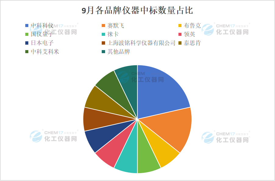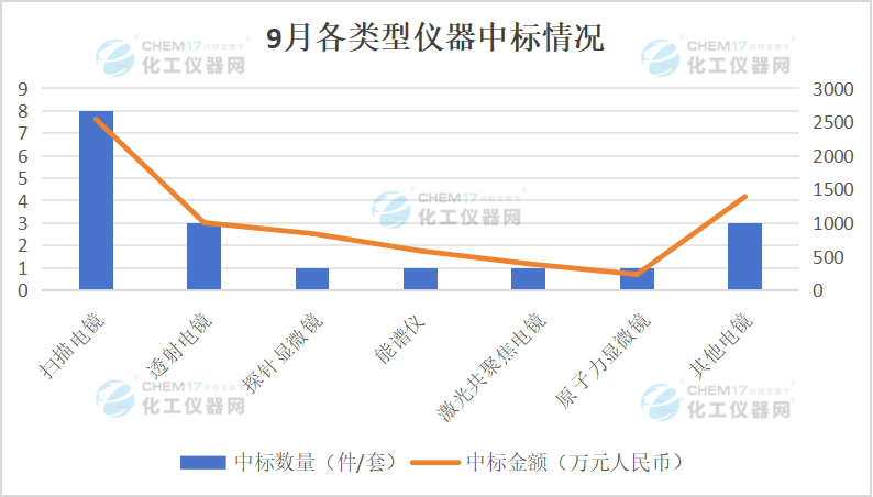9月各類型儀器中標(biāo)數(shù)量占比”和“9月各類型儀器中標(biāo)金額占比”可以看出,掃描電鏡占據(jù)總中標(biāo)數(shù)量的44.44%,占據(jù)總中標(biāo)金額的36.32%;透射電鏡占據(jù)總中標(biāo)數(shù)量的16.67%,占據(jù)總中標(biāo)金額的14.35%