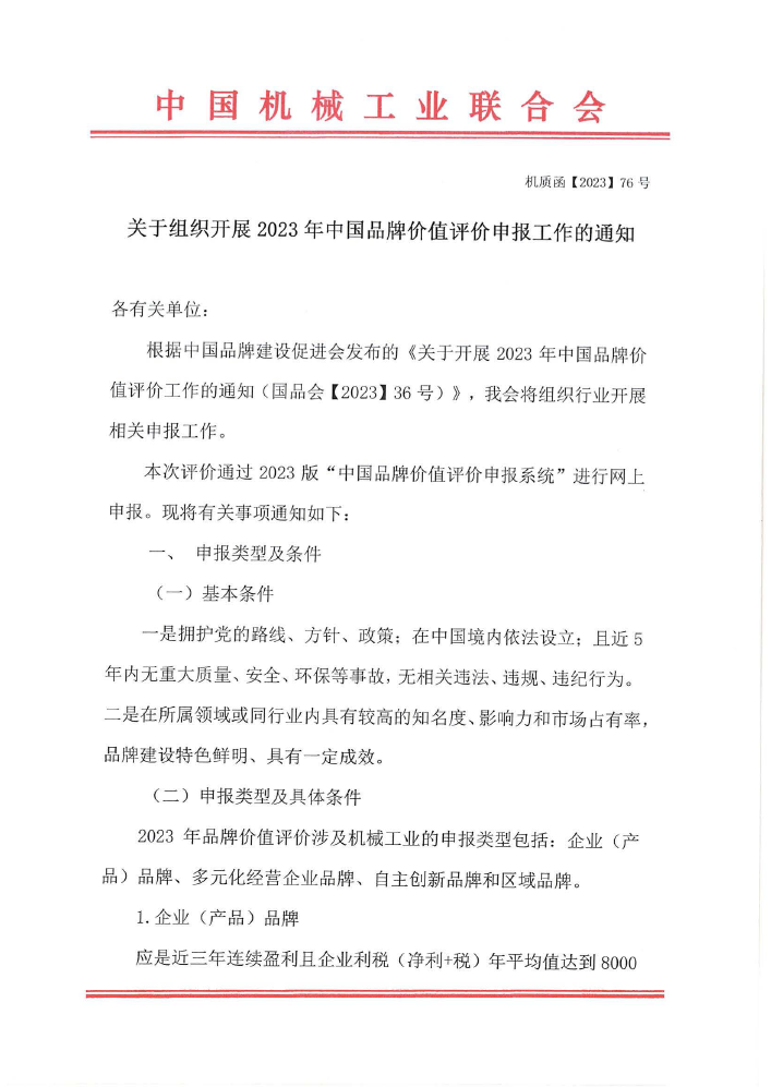 關(guān)于組織開展2023年中國品牌價值評價申報工作的通