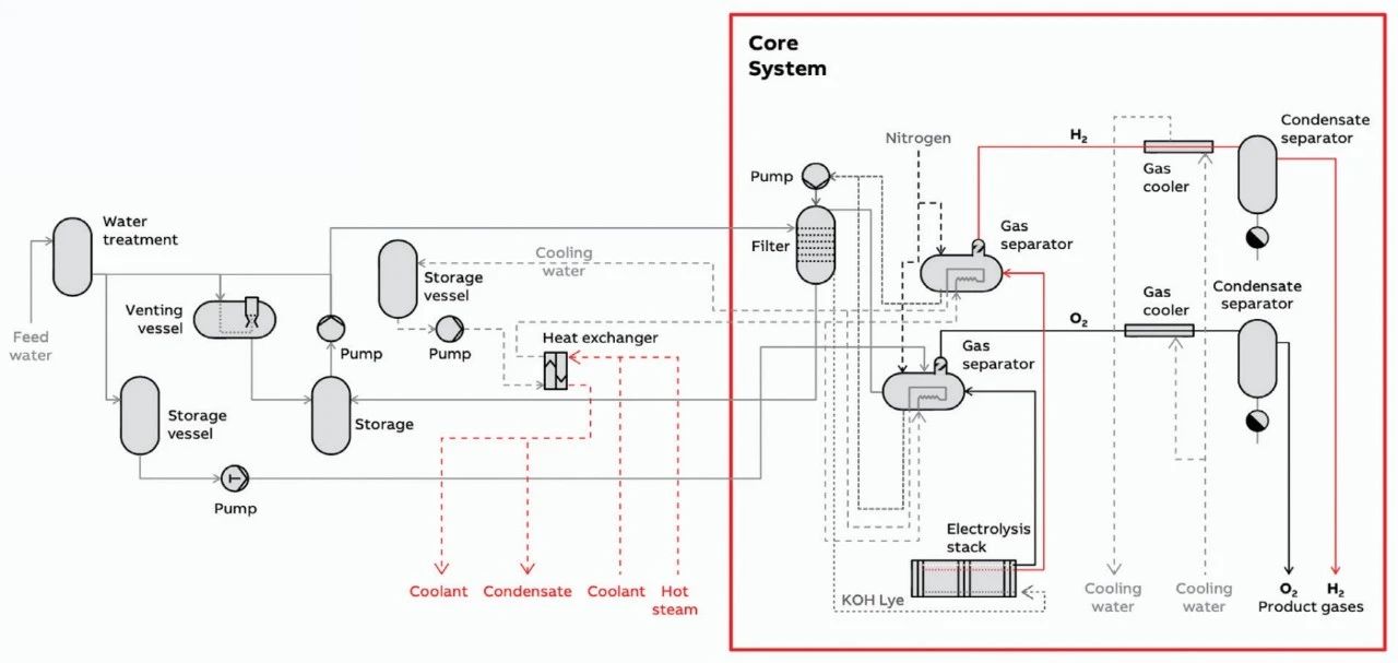 電解氫工藝的過程控制包含三個(gè)主要功能——安全操作、高效的電氫轉(zhuǎn)換和氣體純度控制。在電解過程中面臨的一個(gè)挑戰(zhàn)是,在氫氣流中積聚小濃度的氧氣以及在氧氣流中積聚氫氣的可能性。電解槽堆疊組件可能將氣體從電解槽的一側(cè)泄漏到另一側(cè)(ISO22734將其定義為故障狀態(tài))。
