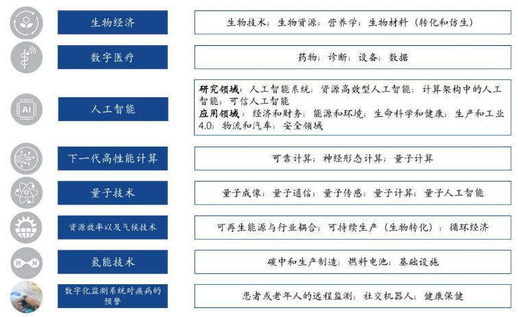 弗勞恩霍夫協(xié)會目前的研究領(lǐng)域主要有8項(xiàng),包括:生物經(jīng)濟(jì)、數(shù)字醫(yī)療、人工智能、下一代高性能計算、量子技術(shù)、資源效率以及氣候技術(shù)、氫能技術(shù)和數(shù)字化監(jiān)測系統(tǒng)對疾病的預(yù)警等。