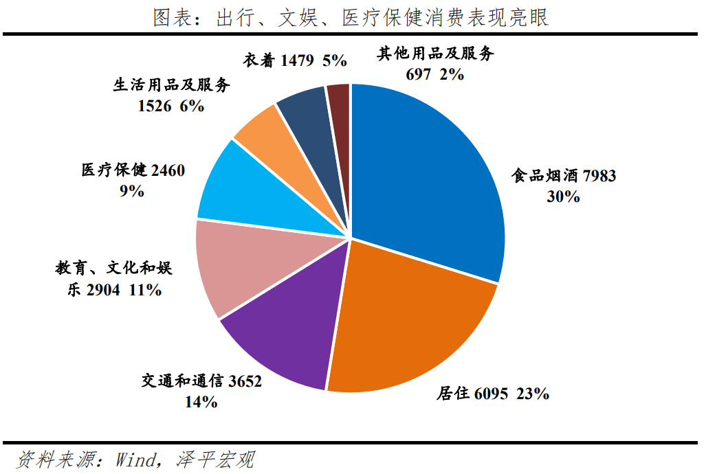 消費以服務(wù)消費反彈最快,人均服務(wù)性消費支出增長14.4%,約占居民人均消費支出的比重達到45.2%。出行、文娛、醫(yī)療和智能消費成為消費新活力。2023年人均消費支出中,教育、文化和娛樂支出,交通和通信支出,醫(yī)療保健支出所占份額為10.8%、13.6%和9.2%,較2022年分別提高0.8、0.6和0.5個百分點。
