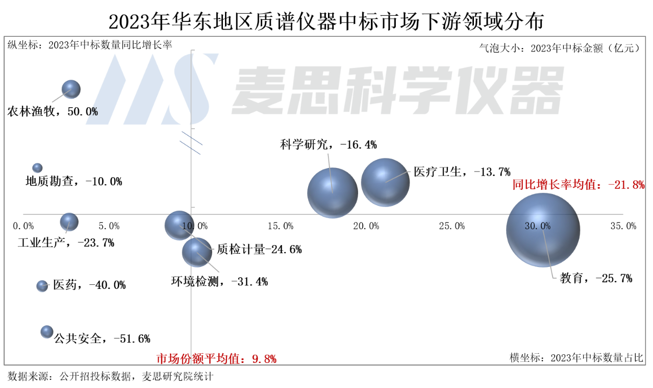 科學研究領域的用戶為科研機構,2023年中標數量占比接近20%,是當前華東地區質譜儀器中標市場的第二大采購群體。
