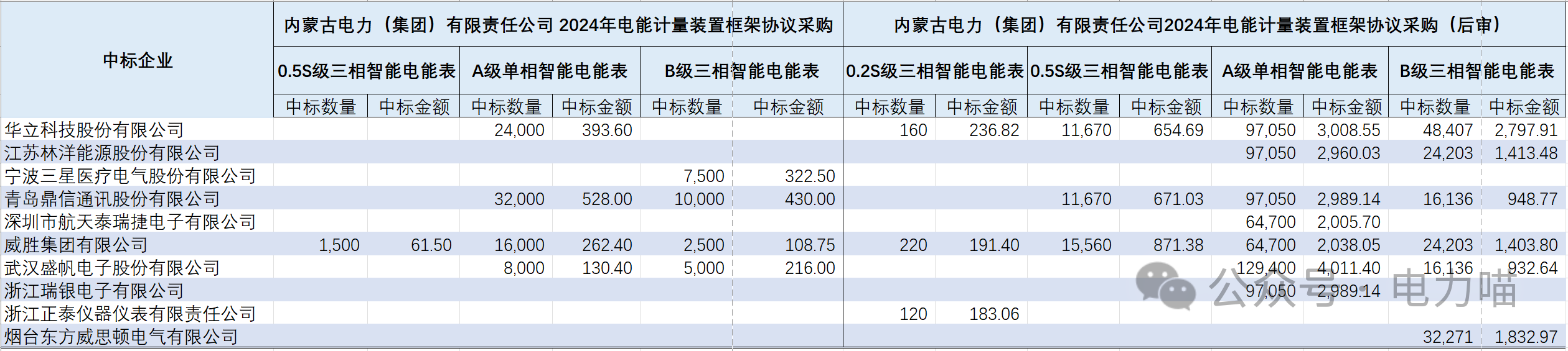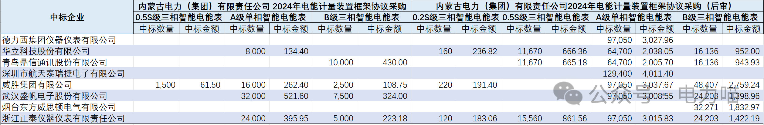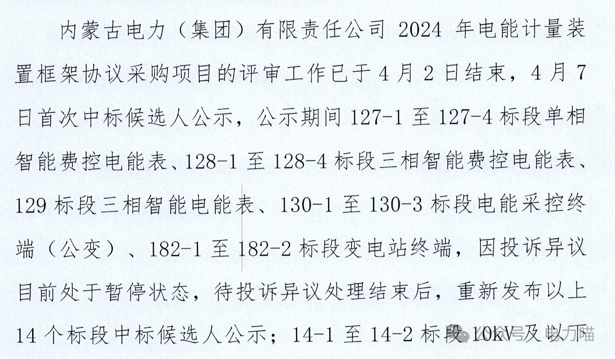 蒙西電網2024年電能計量裝置框架協議項目中標結果