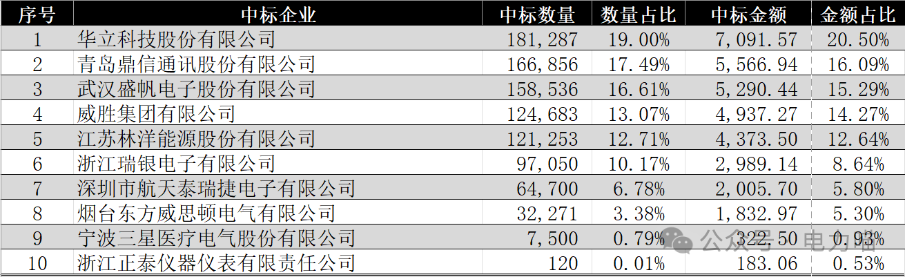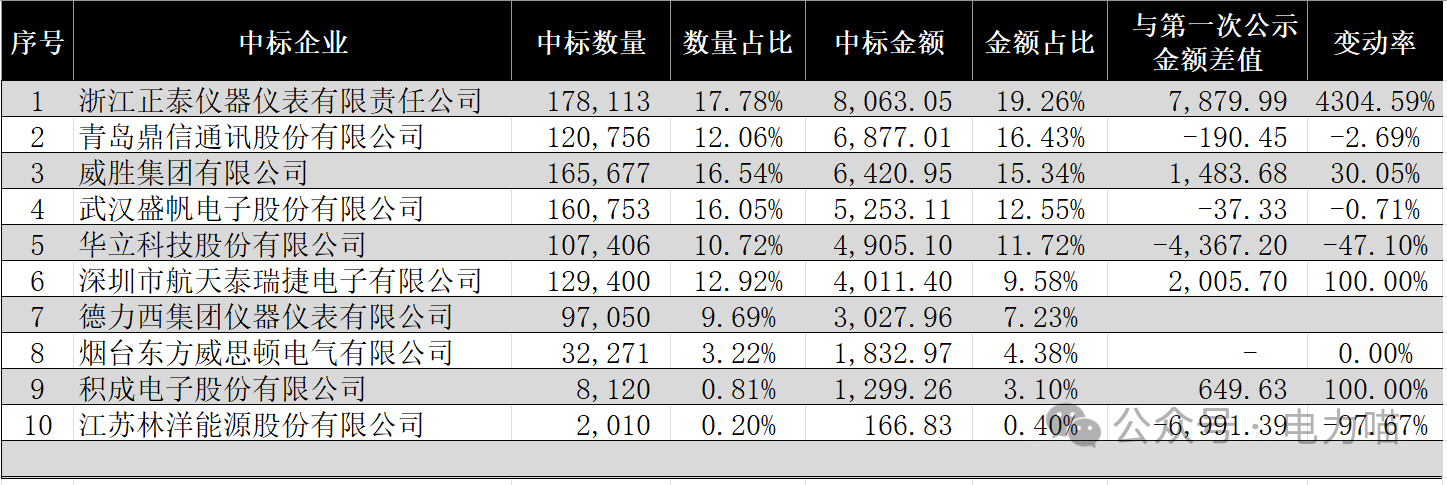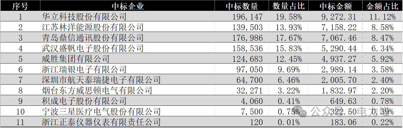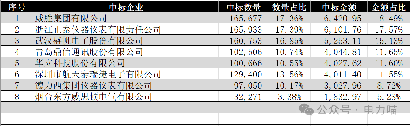 1 電能表物資整體中標情況