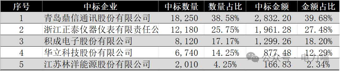 1 用電信息采集物資整體中標情況