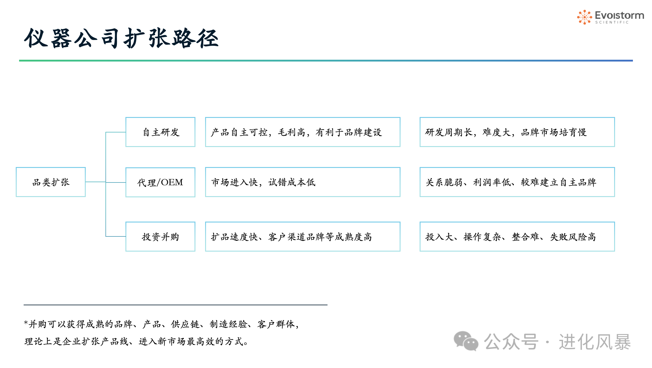 具備多路徑擴張能力的公司才可以真正享受到科學儀器行業的累積勢能,包括: