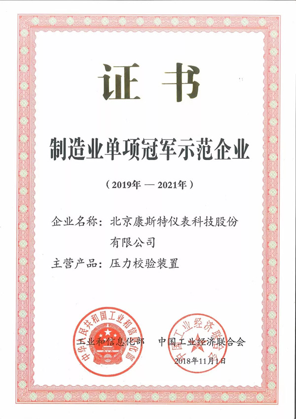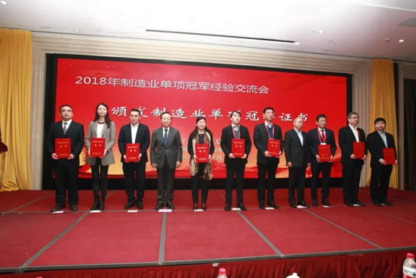 2018年12月18日,工業和信息化部、中國工業經濟聯合會在京組織召開了制造業單項冠軍經驗交流會。工業和信息化部原部長、中國工業經濟聯合會會長李毅中,工業和信息化部副部長王江平等出席了會議,并為制造業單項冠軍企業頒發了證書。