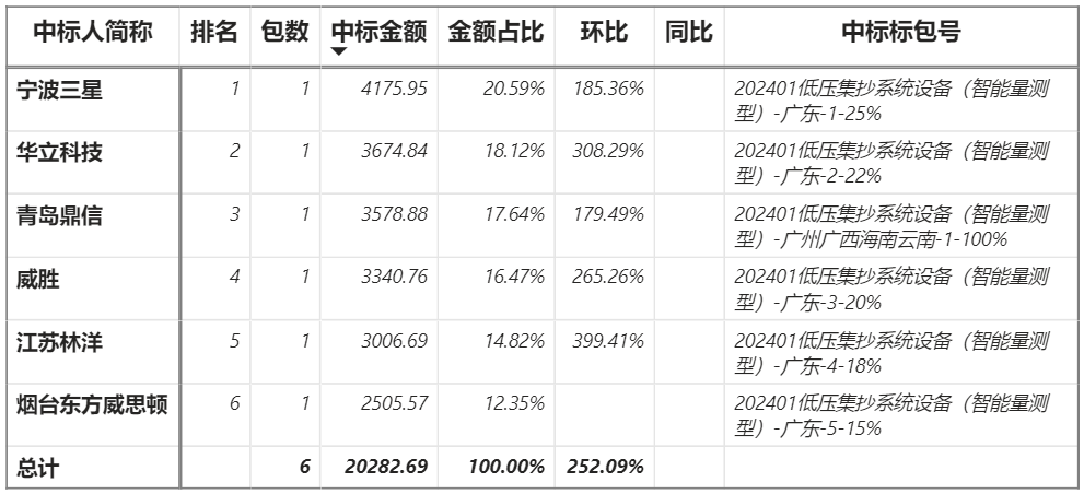 總金額2.03億元,6家企業(yè)實現(xiàn)中標,寧波三星中標最大標包4175.95萬元;