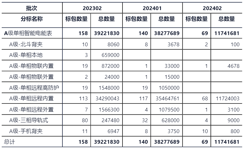 A級單相表預(yù)計至少有68家企業(yè)中標(biāo),最多有1家企業(yè)能中2包;