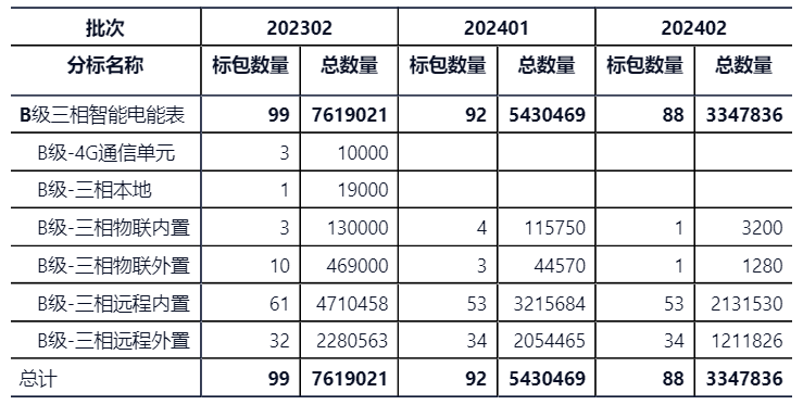 B級三相分標(biāo)總數(shù)量334.78萬只、88個標(biāo)包。