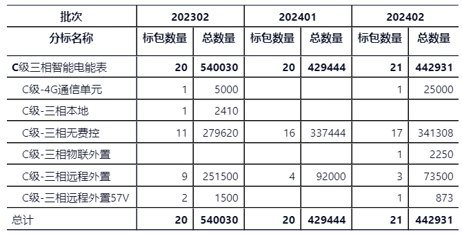 今年國網(wǎng)一共規(guī)劃了3個批次電能表招標(biāo)。