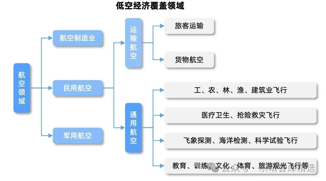 低空經濟產業鏈以低空空域和通用航空產業為基礎,涉及原材料供應、基礎設施建設、低空制造與飛行等多個環節。