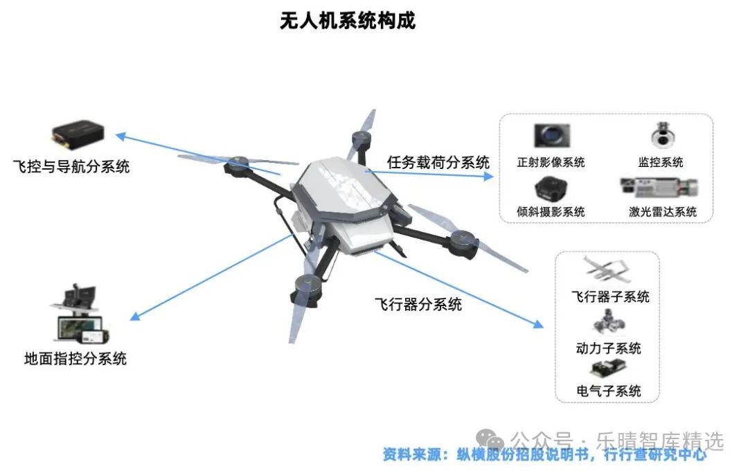 中游聚焦于分系統與總裝集成、低空產品的研發與生產,涵蓋動力系統、航電系統、無人機、航空器等。