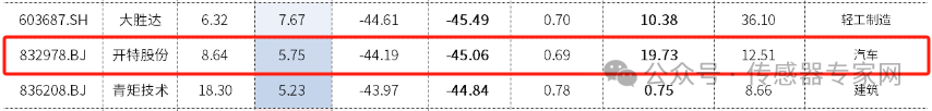 細(xì)分來(lái)看,國(guó)產(chǎn)汽車傳感器企業(yè)開(kāi)特股份收盤報(bào)漲10.07%,領(lǐng)銜中國(guó)A股傳感器股票,市值17.05億元。