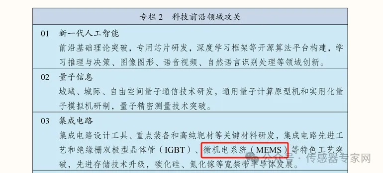 2021年3月,“十四五”規(guī)劃發(fā)布,將智能傳感器重要制造技術(shù)——MEMS(微機(jī)電系統(tǒng))工藝,寫入【科技前沿領(lǐng)域攻關(guān)】技術(shù)項(xiàng)目中。