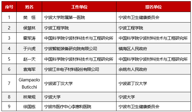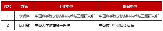 寧波市青年科技創(chuàng)新獎獲獎人員名單