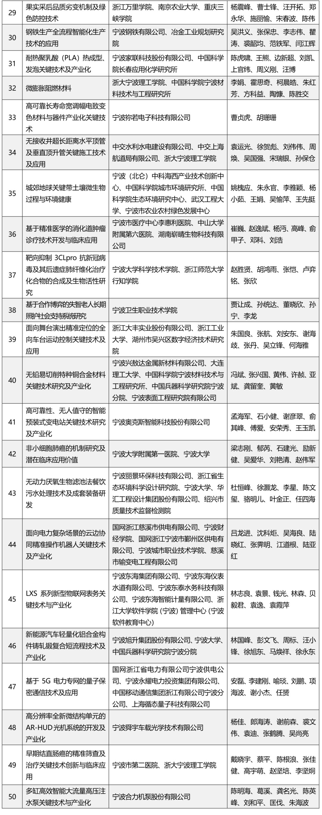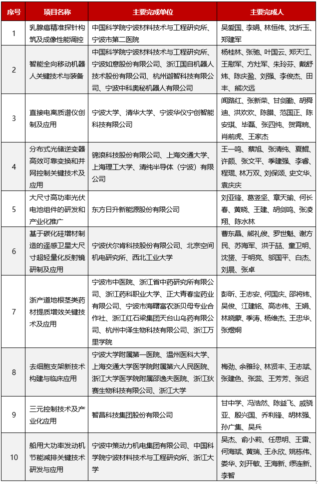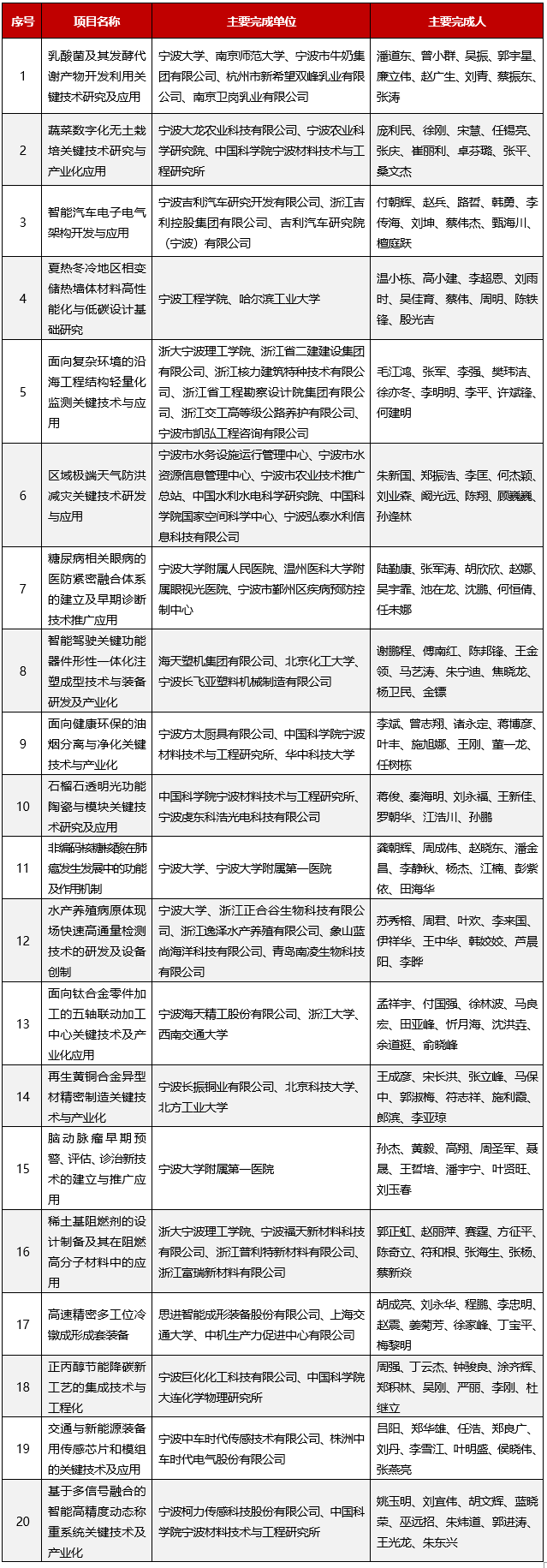 寧波市科學(xué)技術(shù)進(jìn)步獎獲獎項目名單