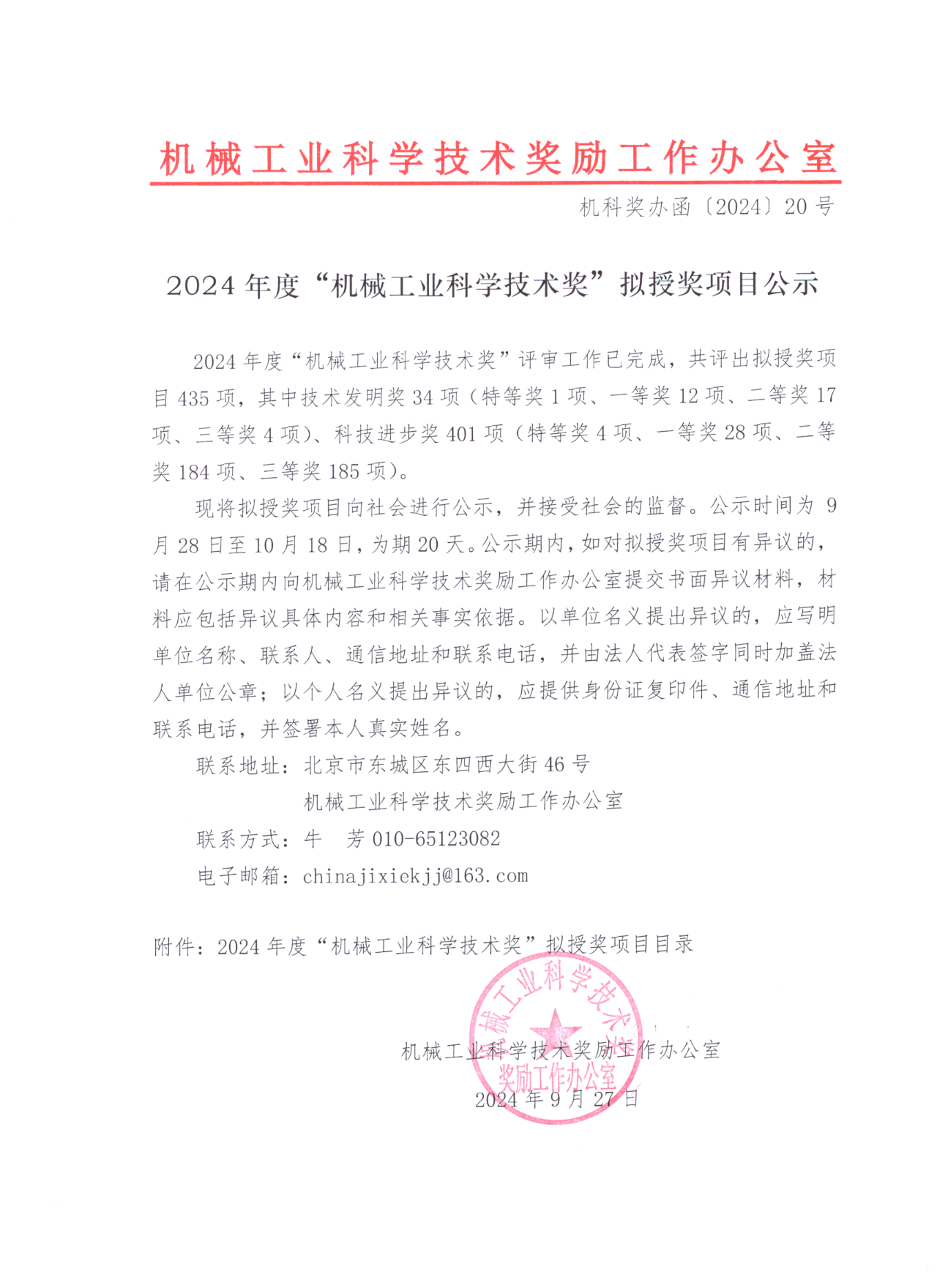 聯系地址:北京市東城區東四西大街46號機械工業科學技術獎勵工作辦公室