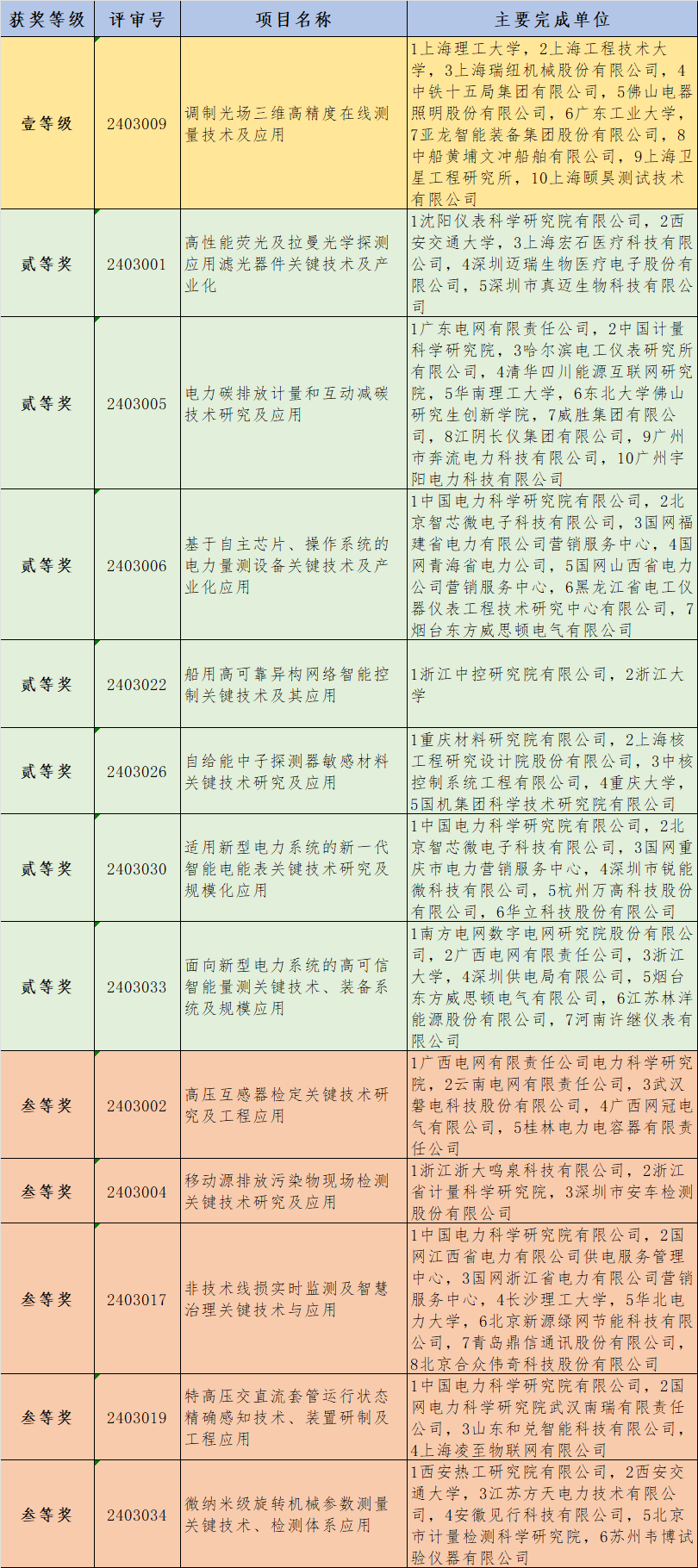近日,機械工業科學技術獎勵辦公室發布了2024年度“機械工業科學技術獎”擬授獎項目公示。共評出擬授獎項目435項,其中技術發明獎34項(特等獎1項、一等獎12項、二等獎17項、三等獎4項)、科技進步獎401項(特等獎4項、一等獎28項、二等獎184項、三等獎185項)。其中儀器儀表組共獲得:技術發明類壹等級1項、貳等獎2項;科技進步類壹等級1項、貳等獎7項,叁等獎5項。
